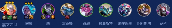 中期需要把杂鱼拉上去帮2星嘉文四世均摊伤害,嘉文四世3星后,可以单顶(劫挂左三右三),遇到有很强的维迦或者乐芙兰,送一个杂鱼上去吃两个技能。