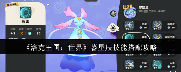 洛克王国世界暮星辰技能怎么搭配?暮星辰的外观方面是比较神秘的,而且幻系在目前属于稀有属性,受到了很多玩家的喜爱,但是对于精灵的技能搭配不太清楚,自然洛克王国世界暮星辰技能搭配一览成为了关注的重点,那这里就由小编提供一下暮星辰的技能搭配方案。