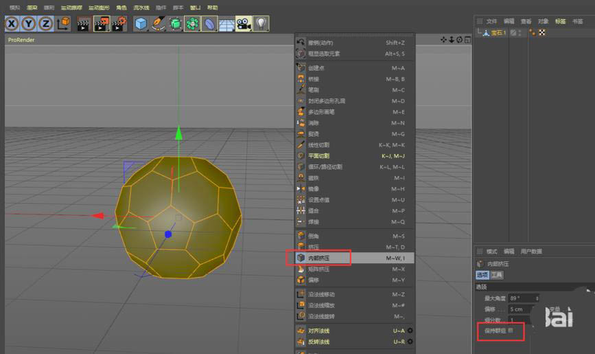 3、进入面层级,快捷键Ctlr+A全选所有的面,按下I键调用出内部挤压 ,把内部挤压得保持群组勾选掉 ,不然在操作得时候它们是一个整体 ,然后往内部挤压,走到差不多得时候,给它设置一下选集(选择-设置选集) ,这个选集很重要的 ,不要忽略这一步 非常重要 ,设置一个选集之后 ,我们现在继续的往内收一点 ,再来设置一个选集(前提是不在选中前面得一个选集得情况下新这是选集);