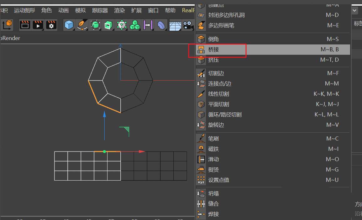 用桥接命令将两个多边形相应的线连接起来,如图所示。