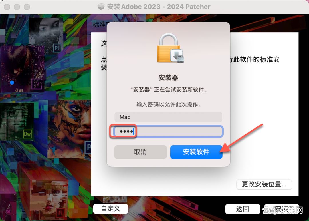 12.输入电脑的【开机密码】,点击【安装软件】。