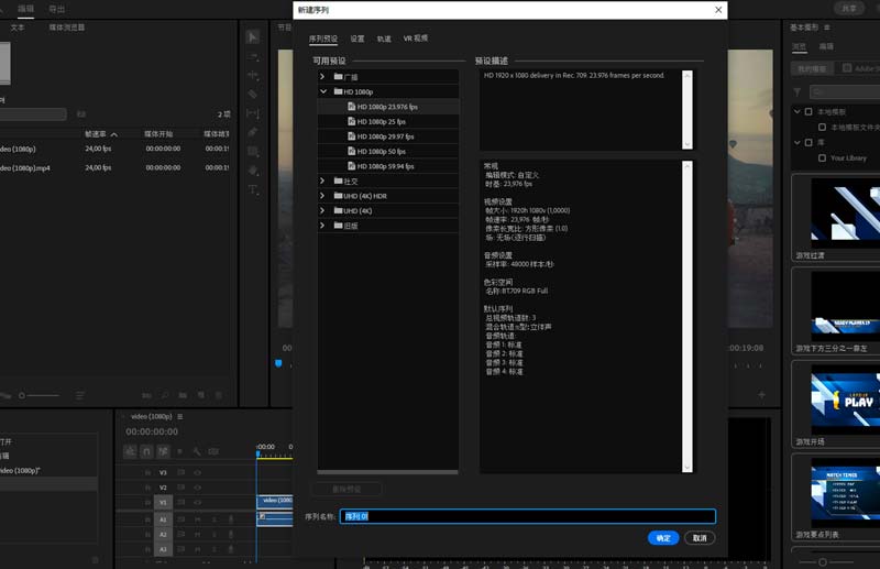 要查看新预设,请导航到文件 > 新建序列或单击项目面板上的新建项 > 新建序列按钮。现在提供了一个简化的预设列表,其中包括: