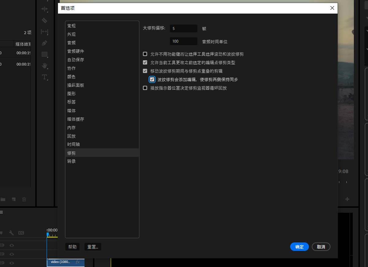 一个称为波纹修剪添加编辑内容以使修剪的两侧保持同步的新首选项已添加到修剪首选项,可在移动波纹修剪期间与修剪点重叠的剪辑下找到。
