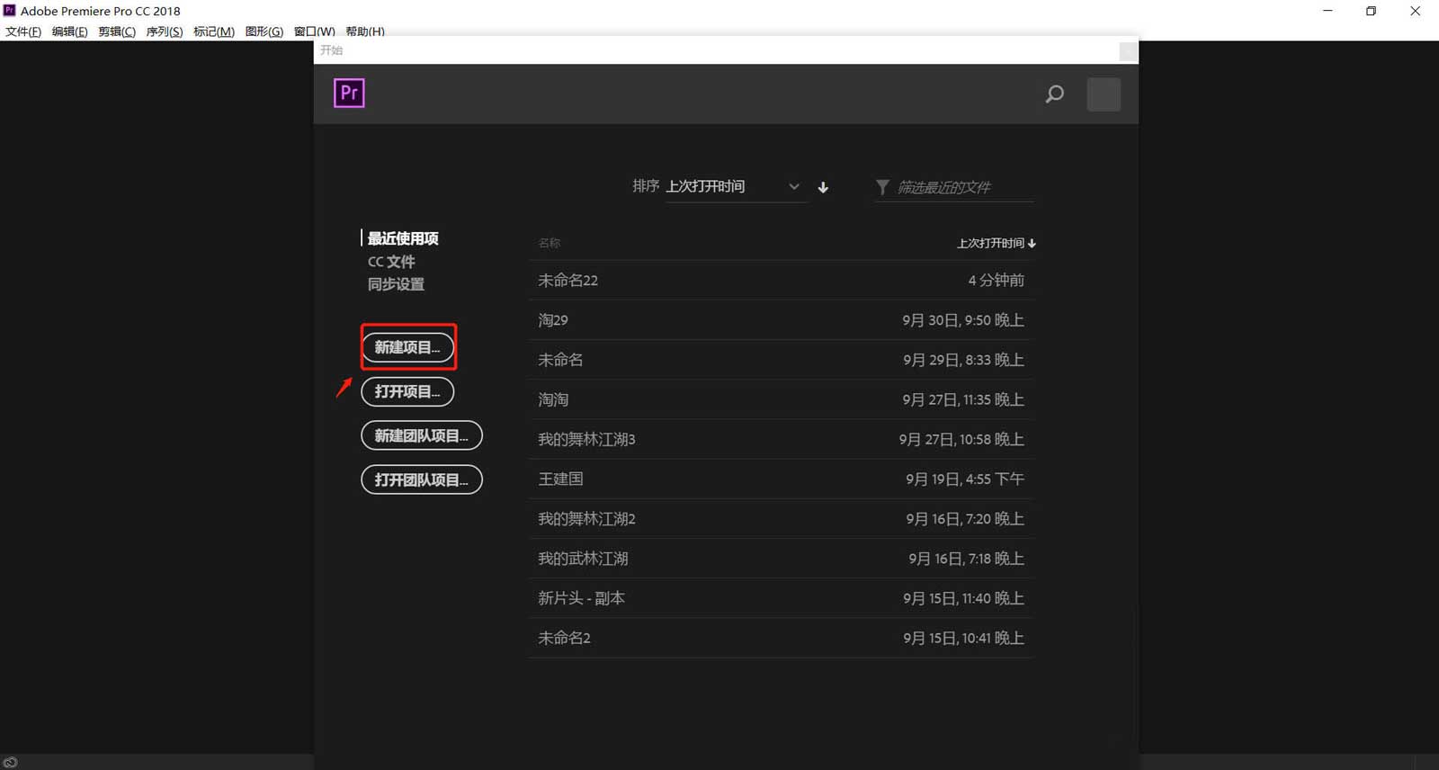 1、首先在电脑中打开PR软件,点击新建项目,创建一个视频剪辑项目。