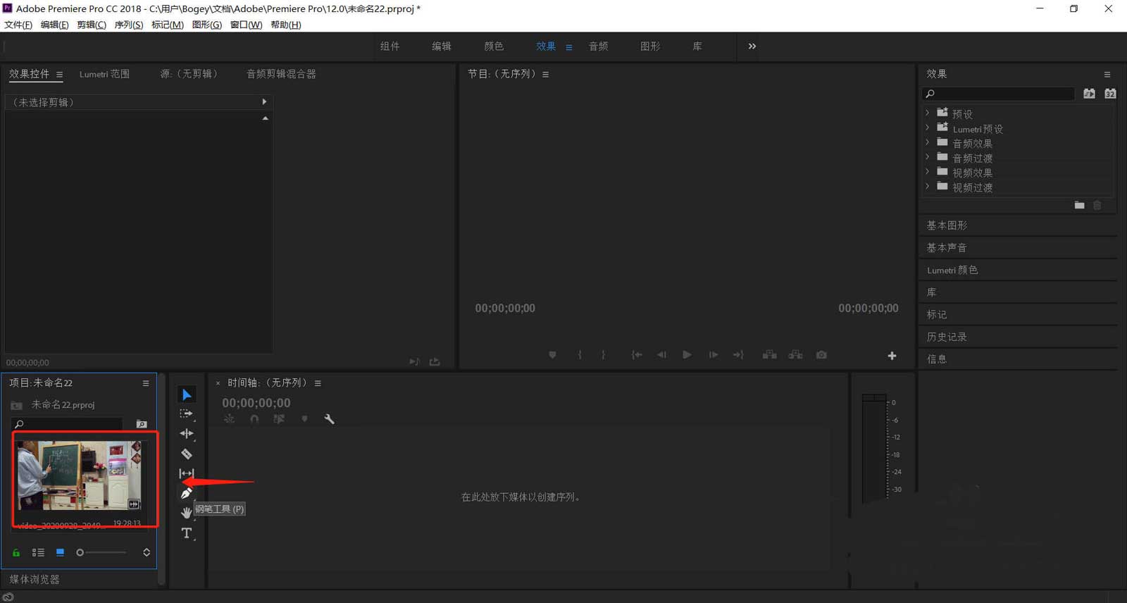 3、按住鼠标左键,从左侧导入的素材拖动到右侧时间轴上面。