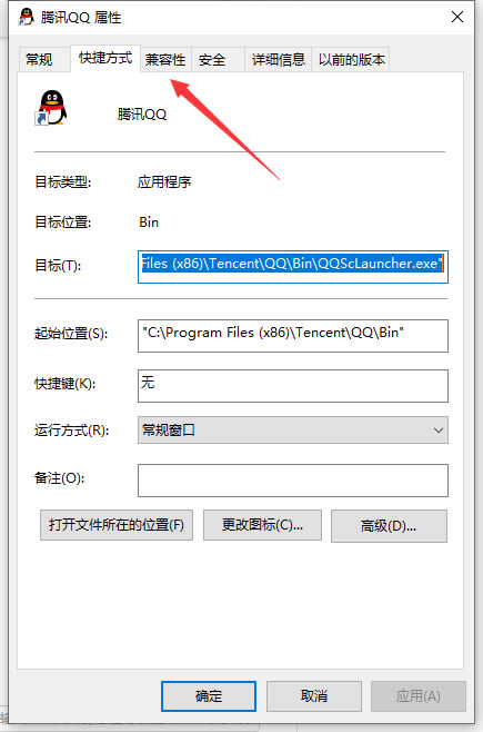 1、在电脑上找想要设置的应用,比如QQ,右键点击该应用,在弹出菜单中选择“属性”的菜单项。