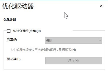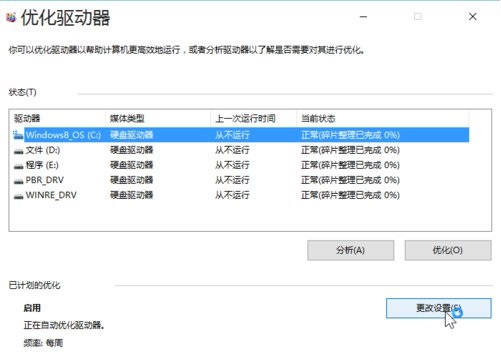4、win10的“优化驱动器”即win7时代的磁盘碎片整理,每两三个月做一次即可,每周计划运行实属对资源的浪费。