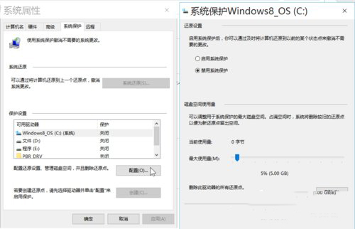2、在下方配置系统保护功能,选择禁用。(如果有开启的话)