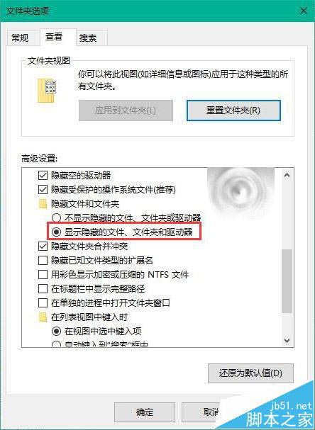 1、由于图标缓存文件为隐藏文件,你需要先在文件夹选项中设置“显示隐藏的文件、文件夹和驱动器”,如下图所示: