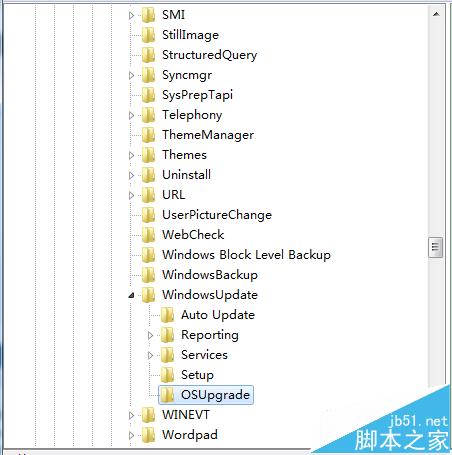 2、进入注册表编辑器界面, 定位到【HKEY_LOCAL_MACHINESOFTWAREMicrosoftWindowsCurrentVersionWindowsUpdateOSUpgrade】项下