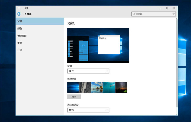 Win10自带了很多壁纸,而且全部分为横、竖两版,分辨率达到4K级别(3840x2160),画面精致度是历年来少有的,点击即可更换。不过在此之前,你需要先把你的Win10激活,否则……这里全部将是灰色的!