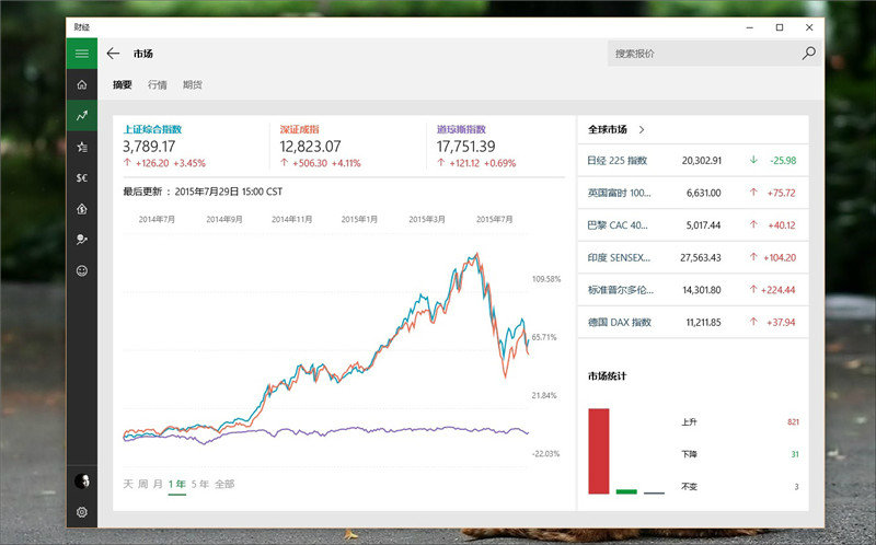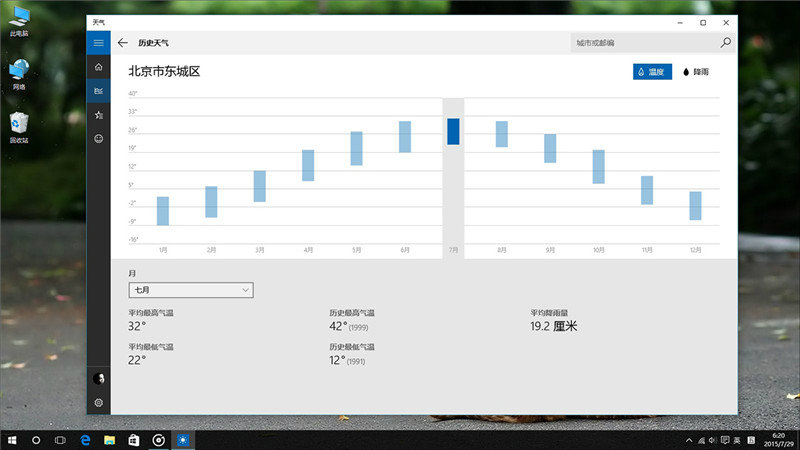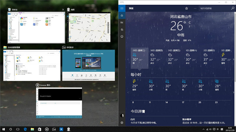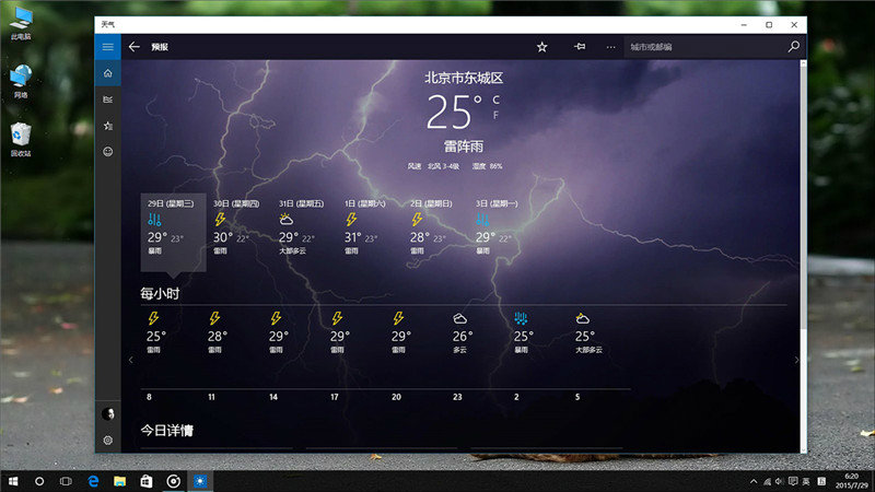 天气APP,支持地理位置自动定位,速度也很快。关键是信息相比旧版丰富了许多,可以根据窗口尺寸智能调整显示,这是Win10通用化APP的一个共同特征