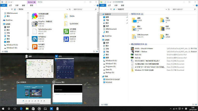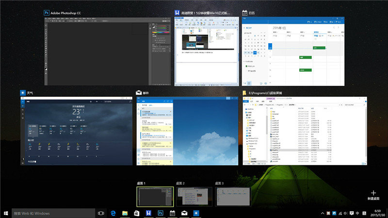 窗口过多可以放置到其他“桌面”,比方说你可以一个放置社交工具,一个放置工作文档,这项功能在Win10中就被称为--“虚拟桌面”
