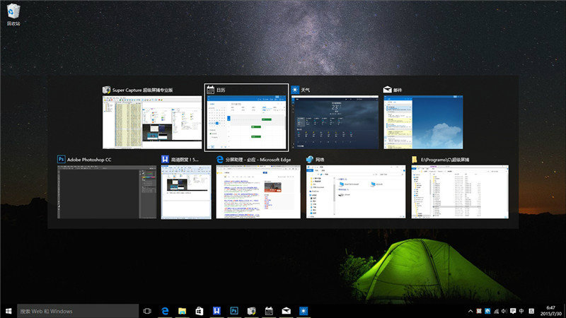 这是Win10下的Alt+Tab,缩略图尺寸较之前版本更大,更方便高分屏用户选择和识别