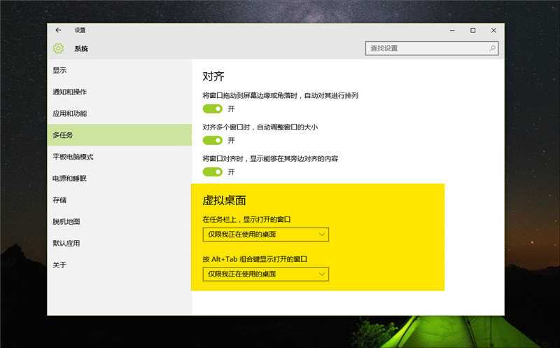 虚拟桌面之间是默认隔离的,也就是说你可以在里面尽情地使用Alt+Tab、Aero Snap等窗口功能,而不必担心影响到其他“桌面”下已打开程序。当然如果需要也可以改为共享,一切取决于你的习惯