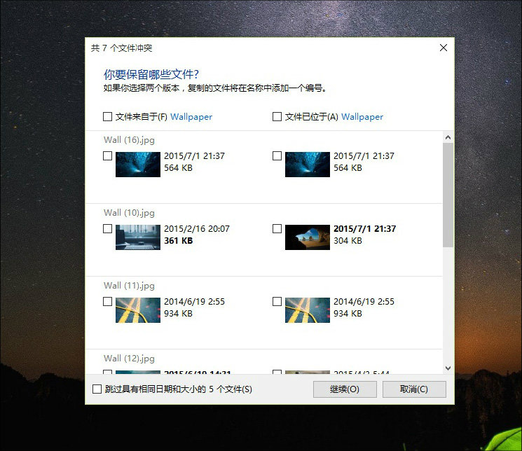 当目标文件夹存在同名图片文件时,会弹出缩略图供用户选择