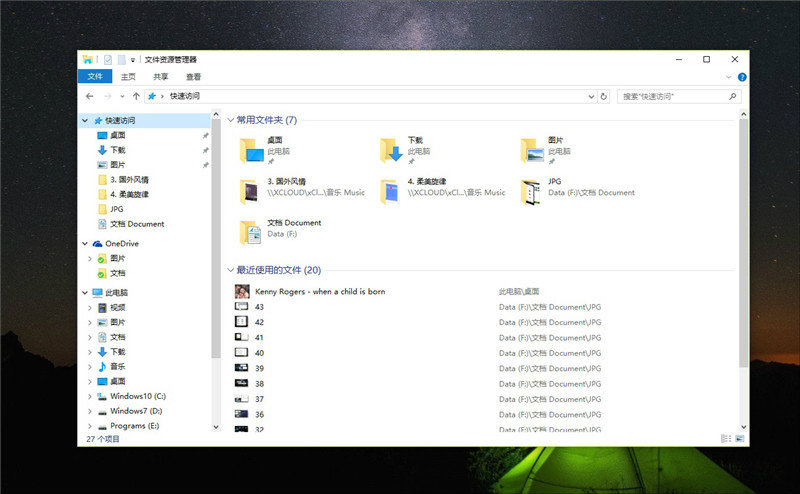 启动文件资源管理器后会默认打开“快速访问”,这是一项类似于“最近使用的项目”的功能,可以自动显示用户刚刚使用过的文档、文件夹等内容,此窗口内容会根据频率自动刷新