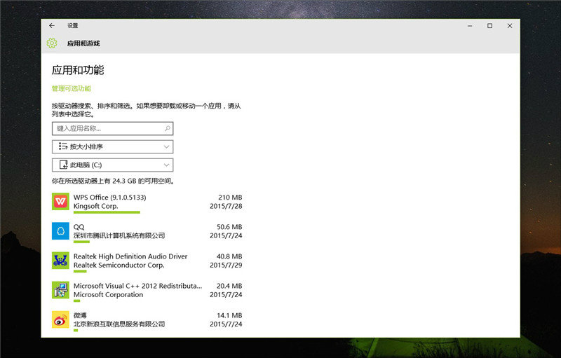 Win10可以快速检测出某一磁盘上最占空间的文件或应用,碍眼的话,直接点击卸载即可