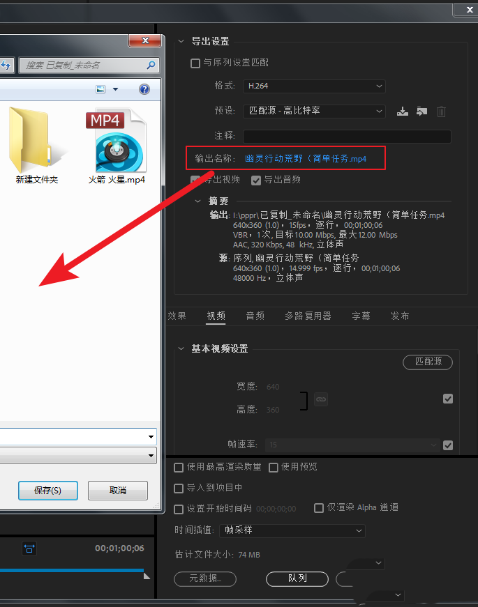 2、点击输出名称旁边的蓝色文字--选择一个保存路径。(这里选择的路径就是后面批量渲染的路径。)点击保存。然后再点击取消,退出导出设置。
