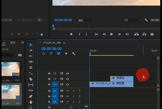 1、首先将视频素材倒入pr中。