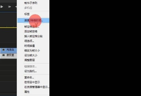 2、鼠标右键选择【时间/持续速度】。