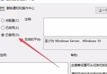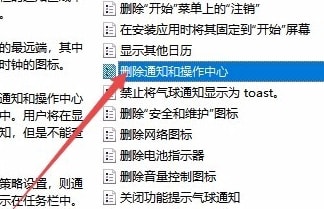 5、在右侧窗口中找到“删除通知和操作中心”设置项。