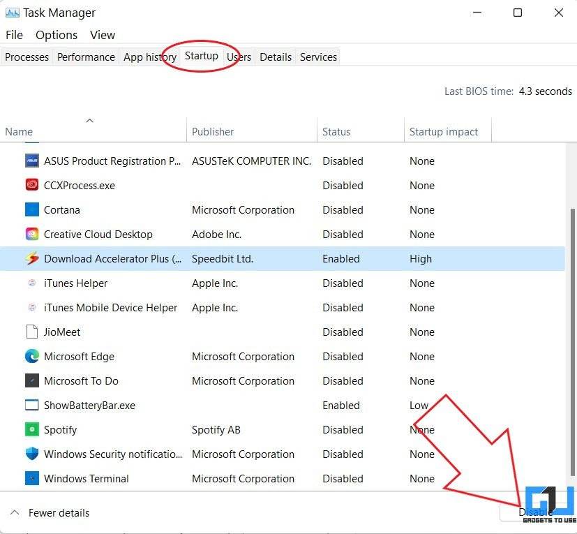 任务管理器可让您查看启动程序及其对计算机启动时间的影响,并允许您启用或禁用启动程序。以下是如何在 Windows 11 上使用任务管理器禁用启动程序: