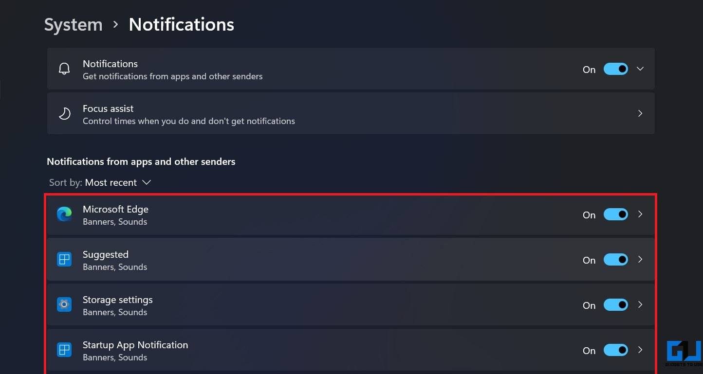 3.在这里,查看和禁用不需要的应用程序的通知。