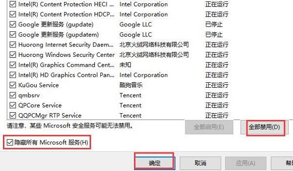 Win+ R输入“msconfig”→确定,服务→勾选隐藏所有的Microsoft服务去掉不需要执行的服务。