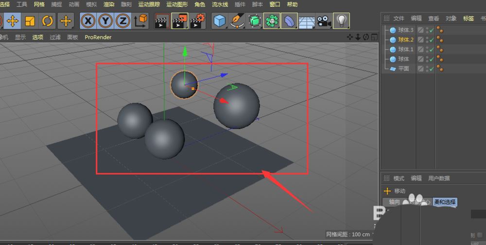 如图,在工作界面中建立几个球体模型,可以对每个球体进行大小的变化或者不设置