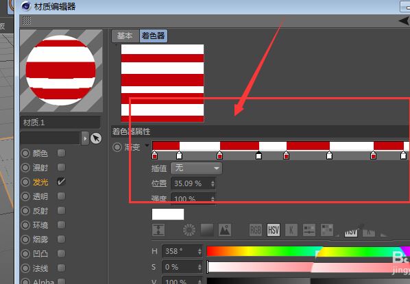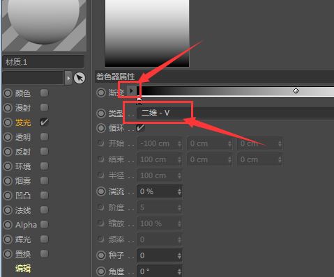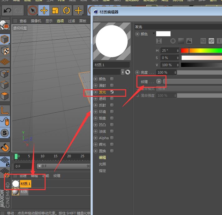 双击材质,只选择其中的发光效果,然后打开右侧面板中的纹理