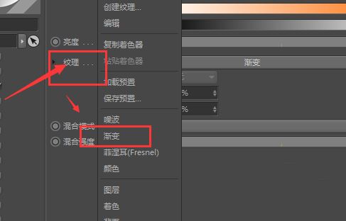 在纹理选项栏中,选择里面的渐变效果,如图所示
