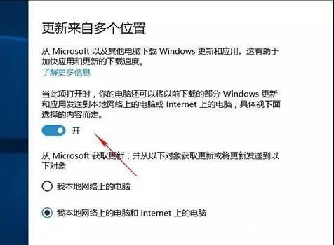 在Win10的“设置”→“更新与安全”→”Windows更新“→”高级选项“→“选择如何提供更新”中,你会看到一项“当此项打开时,你的电脑还可以将以前下载的部分Windows更新和应用发送到本地网络上的电脑或Internet上的电脑,具体视下面选择的内容而定”。