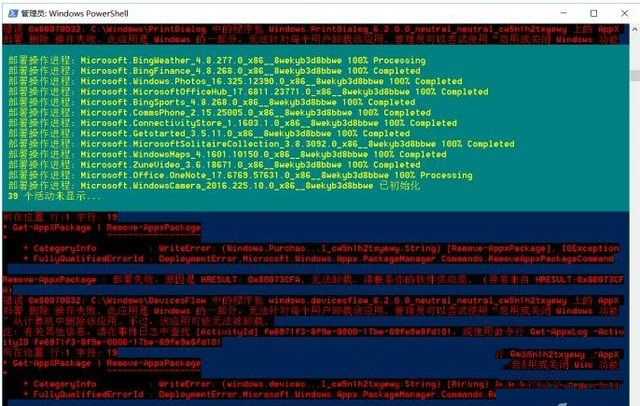具体操作是,管理员身份启动Powershell,然后英文状态下输入“Get-AppxPackage*需要卸载应用名称*|Remove-AppxPackage”即可。