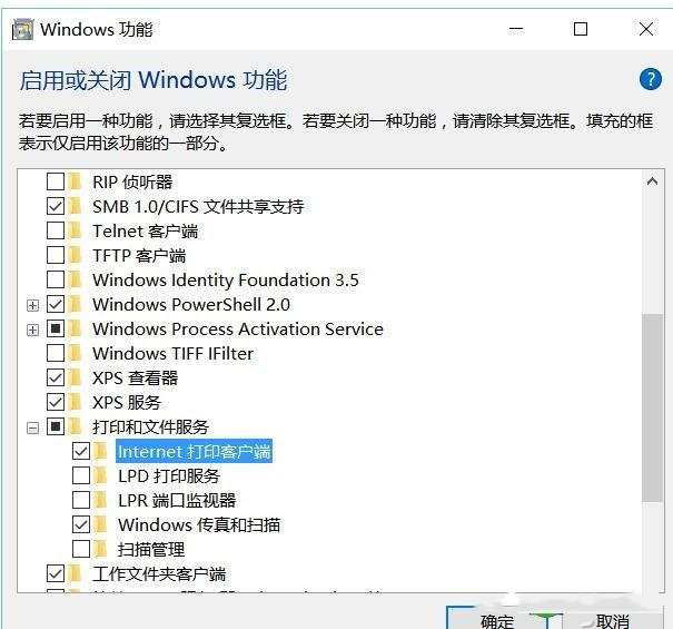 在打开的窗口中根据自己实际情况去除不必要组件的勾选,比如很多没有配置打印机的用户,打印和文件服务就基本没有用处,去除其前面的勾选,然后按提示进行系统服务的关闭即可。