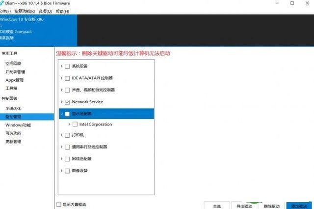 在使用上也异常简单,启动Dism++后切换到相应的功能组件进行精简即可,如切换到“驱动管理”,在你需要删除的驱动上打勾,再点击移除驱动即可。