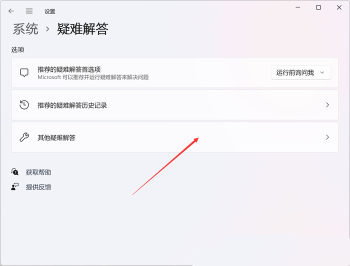 首先,打开设置(Win+i),定位到当前路径,系统 > 疑难解答,点击选项下的其他疑难解答