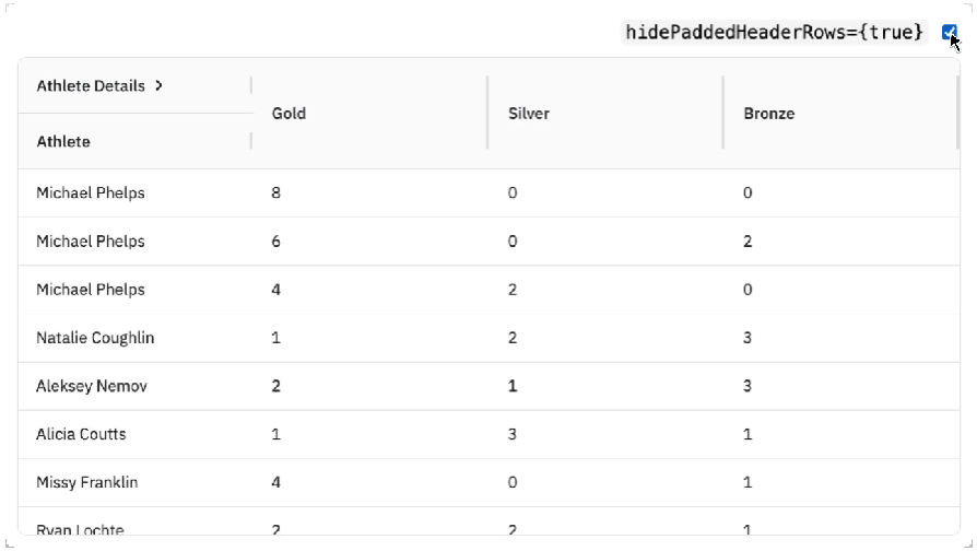 <AgGridReact hidePaddedHeaderRows={true}/>