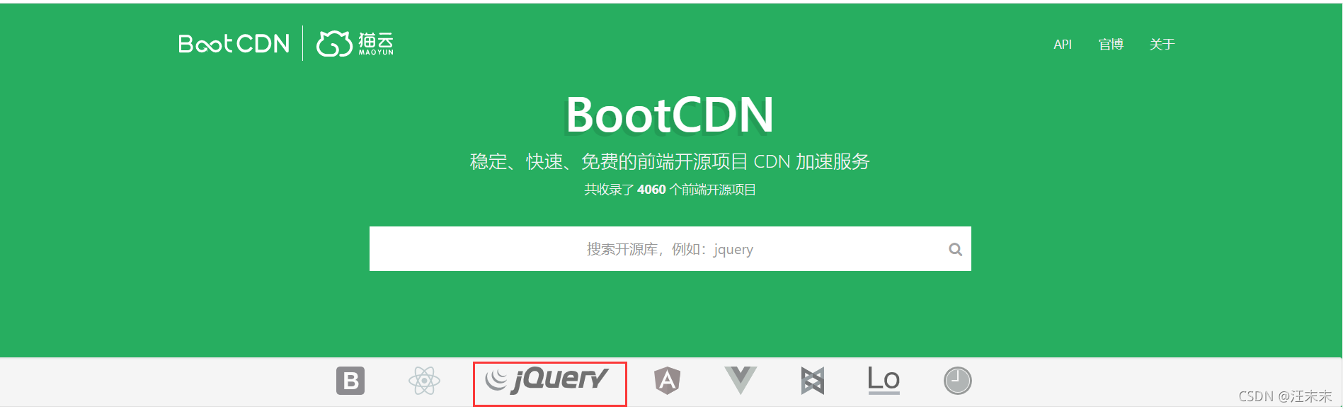 可以到网站 去查找项目所需要的jQuery.js 版本的在线地址。项目上线时, 一般使用比较靠谱的CDN资源库,用来减轻服务器负担。