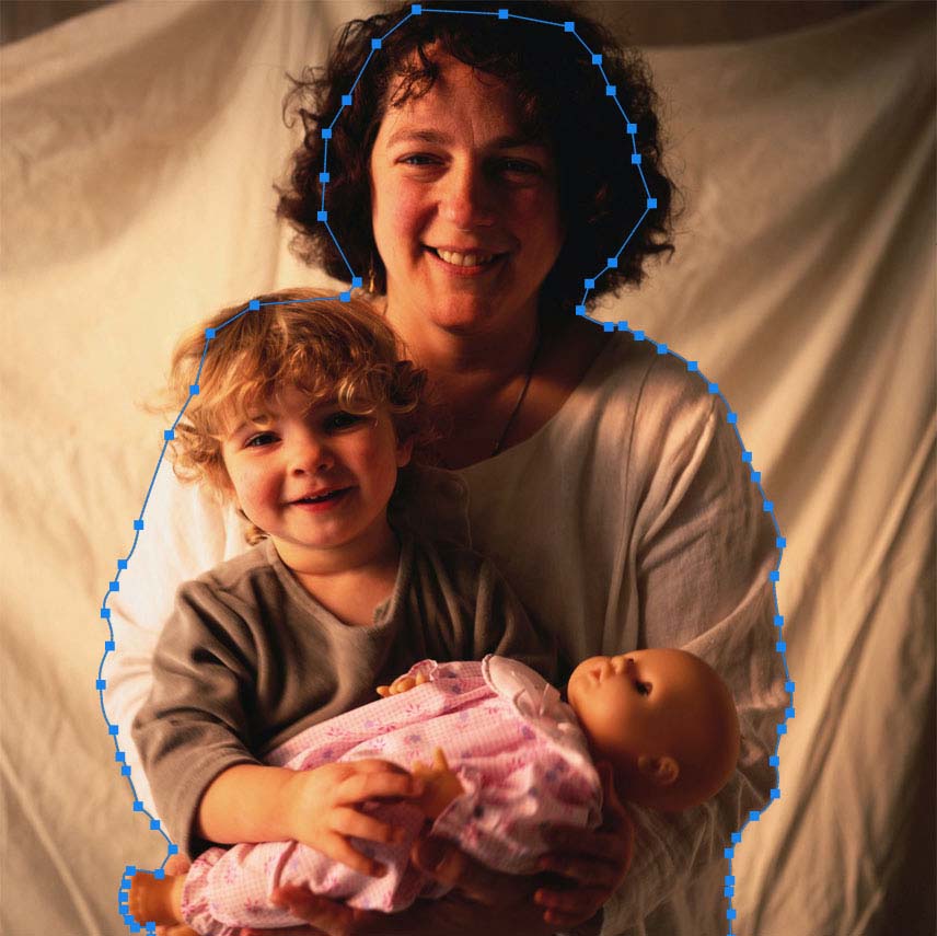 1、切换为钢笔工具,沿母亲轮廓绘制路径,绘制好的路径如下图所示。