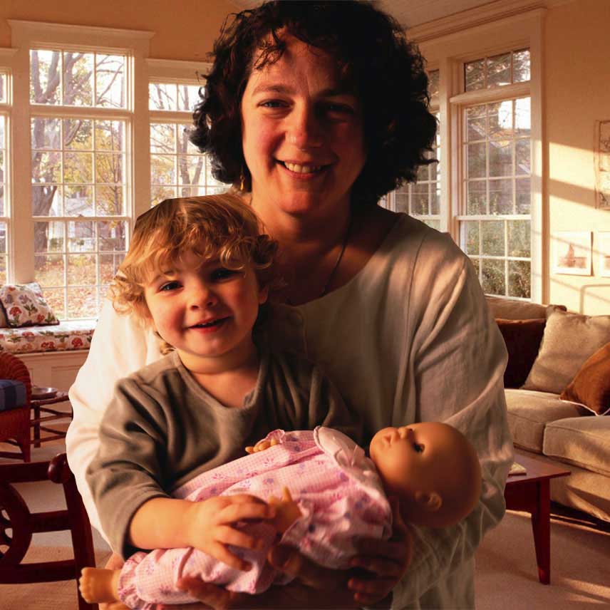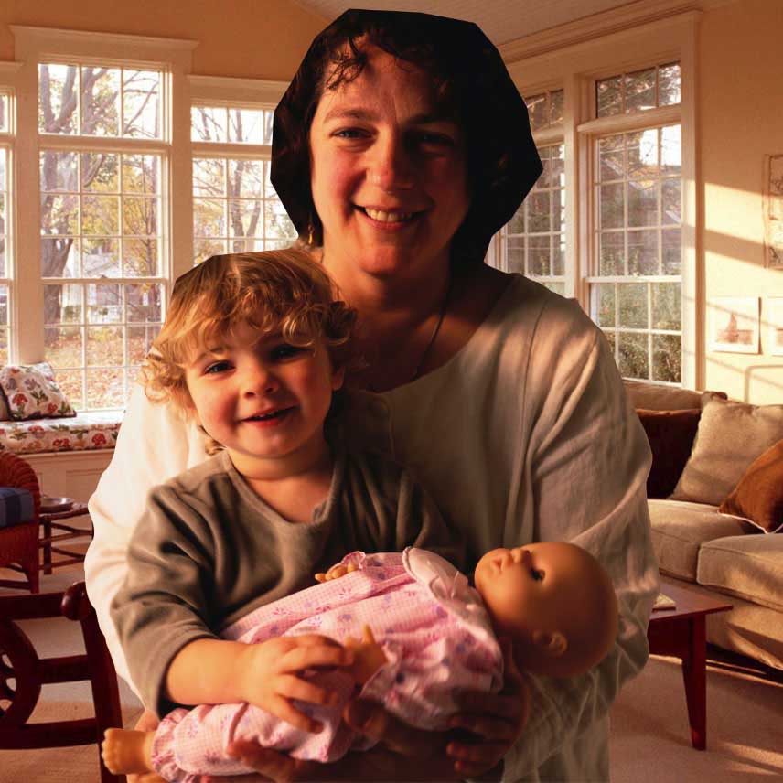 15、发现母子俩在新背景下显得有些黯淡,所以给一个色阶调整图层,通过调节中间调滑块,将人物调亮。