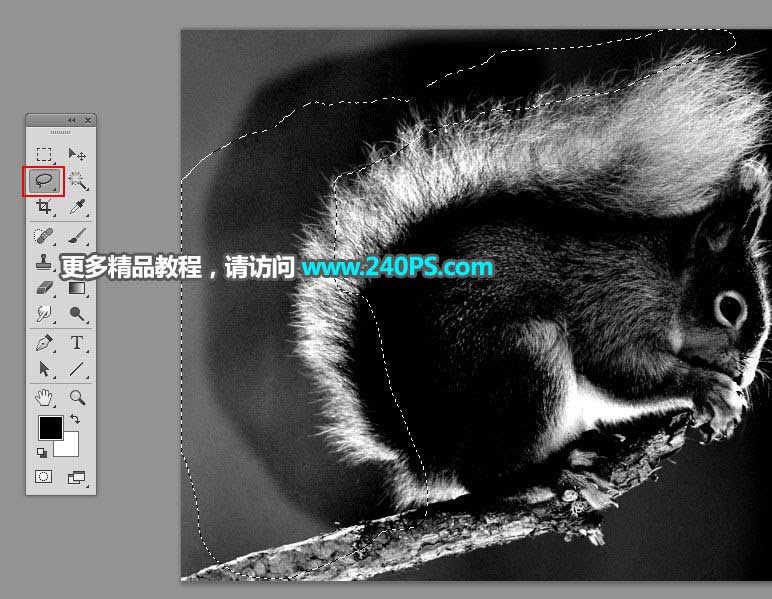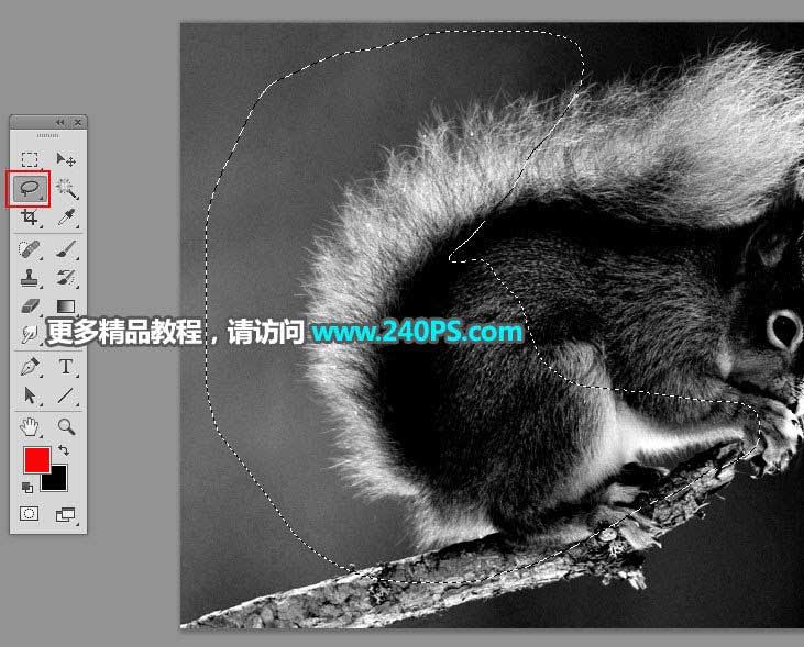 16、选择套索工具,勾出松鼠毛发区域选区,如下图。