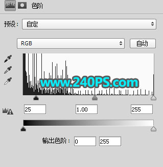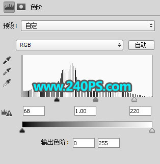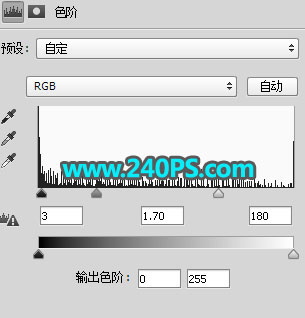 13、创建色阶调整图层,把暗部压暗一点,参数设置如下图,确定后把蒙版填充黑色。