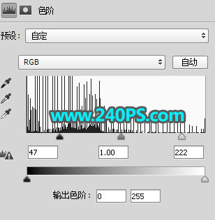 10、创建色阶调整图层,增加明暗对比,参数及效果如下图。