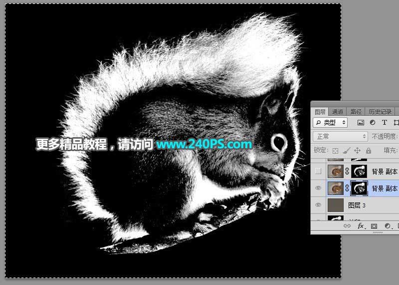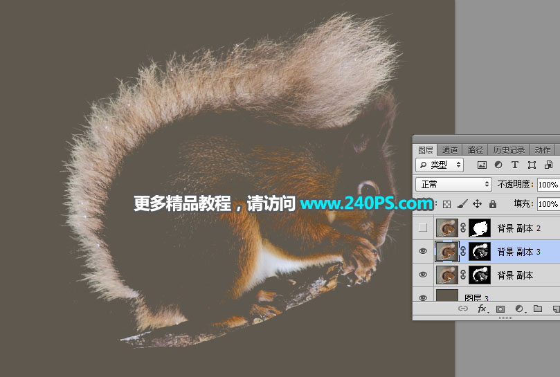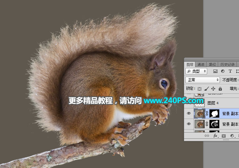 教程结束,以上就是关于Photoshop用通道抠图快速抠出毛茸茸的小松鼠教程的全部内容,希望大家看完有所收获!文章来源于 240PS,感谢作者 昀恒 给我们带来经精彩的文章!