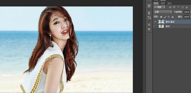 6.用钢笔工具把人像外围扣选出来,如图: ctrl+Enter转换蚂蚁选区,ctrl+j复制出来单独图层。