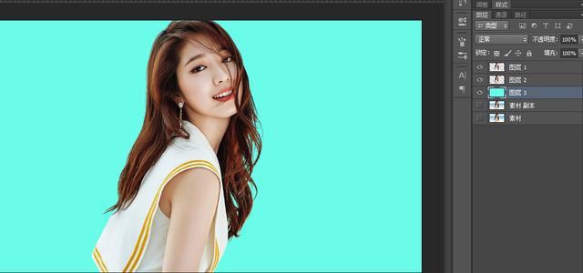 7.ctrl+d取消选区,在复制出单独图层下方创建一个新的图层并填充为#6bfce9颜色。