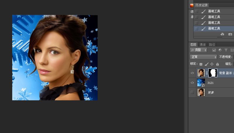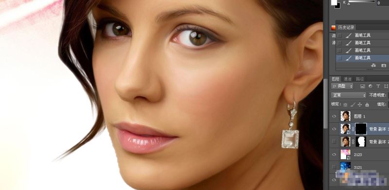 使用画笔调整,顺便把模特的半透明衣领也处理一下,点击确定,得到如下