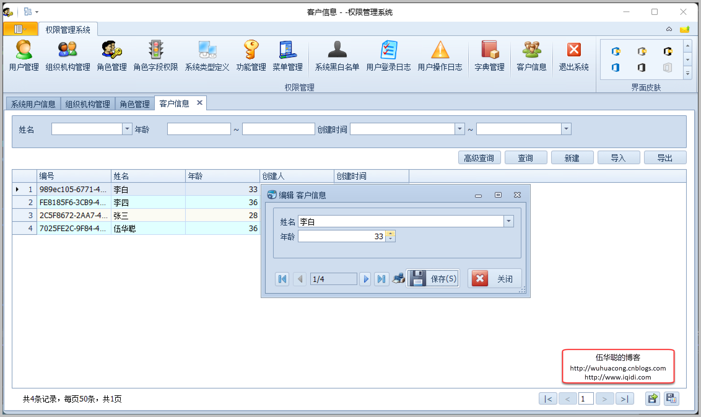 WInform界面一般也是按照列表、编辑、查看等界面的组合处理,实现业务数据的分页展示,以及编辑或者查看等,因此可以根据需要定制进行开发,一般列表界面中整合查看、编辑、新增、删除、导入、导出、查询/高级查询等功能,整合的编辑界面也是依据数据库表的信息进行生成的。