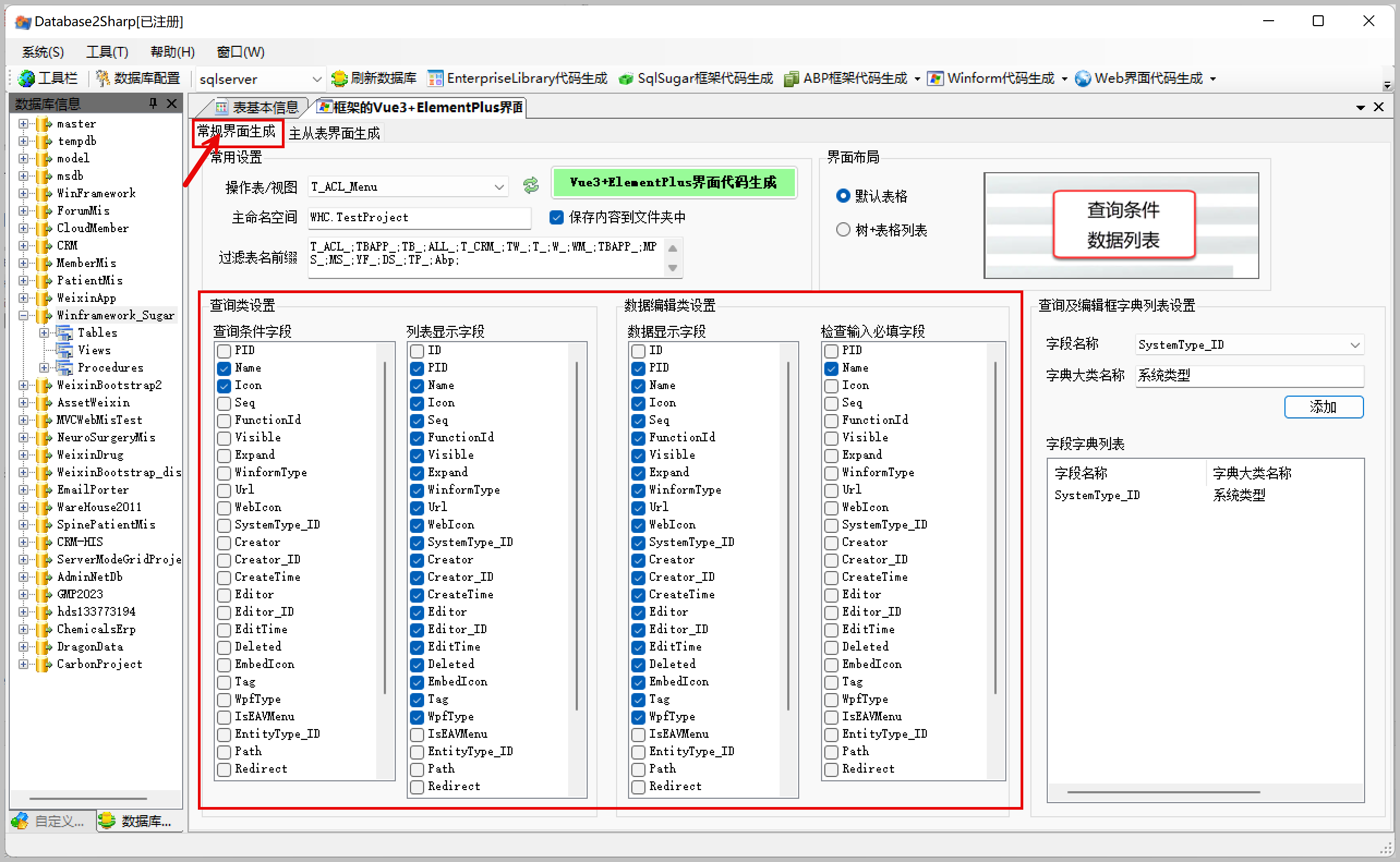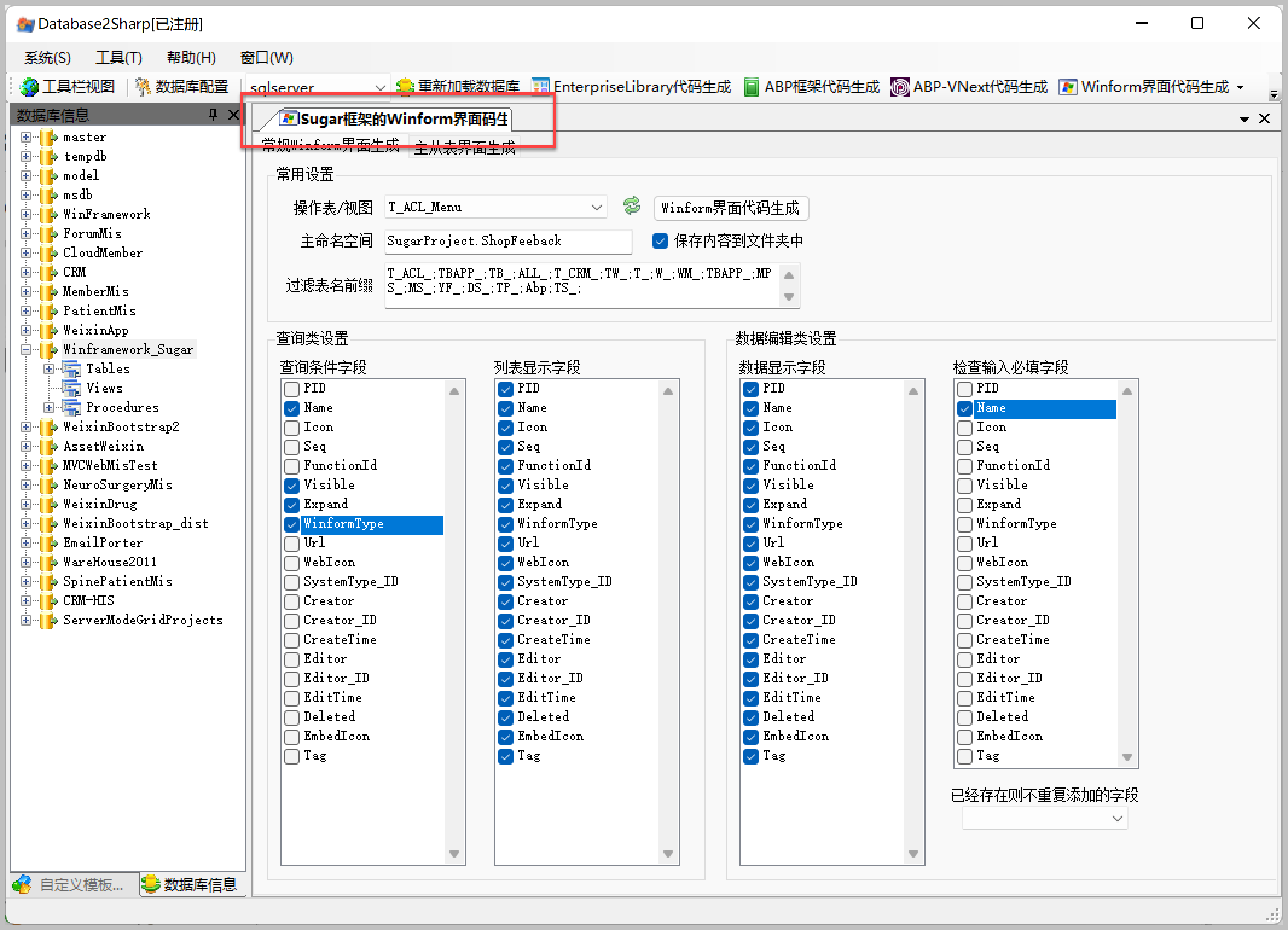 WInform界面生成的界面效果如下所示,通过选定不同的字段,定制化界面效果。